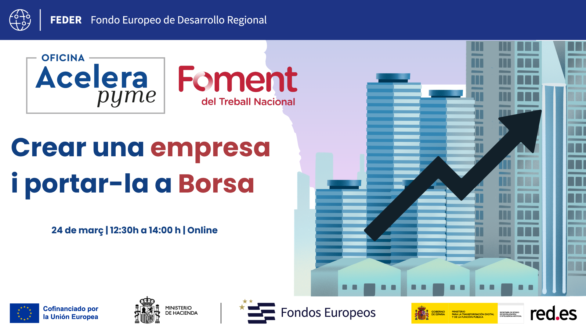 El passat 24 de març, de 12.30 h a 14.00 h, Foment Oficina Acelera Pyme va organitzar una jornada en què Oriol Vila, cofundador de BlaBlanote i cofundador i ex CEO de Holaluz, i Miguel A. Díez Ferreira, fundador i CEO de Startups Institute, van compartir la seva experiència en la creació i el creixement d’empreses fins a la seva sortida a borsa.