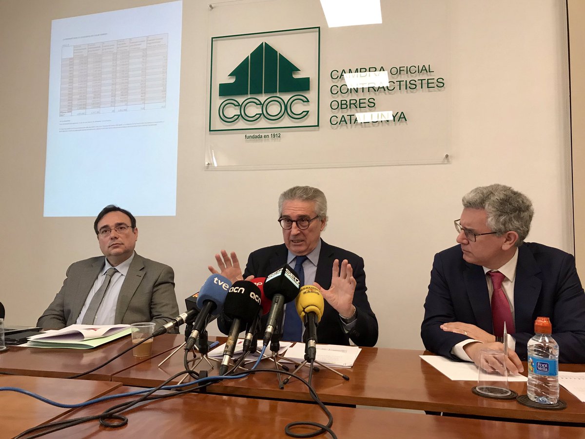 La CCOC también insiste en recordar que la inversión pública debe ser estable y previsible para suavizar los ciclos económicos, dar certeza a los agentes económicos y evitar fuertes ajustes del sector en tiempos de crisis, y que la licitación mínima regular y recurrente de todas las administraciones que requiere Cataluña para satisfacer sus necesidades en infraestructuras económicas y sociales [1], presentes y futuras, debería ser, aproximadamente, del 2,2% del PIB (unos 5.000 millones anuales).