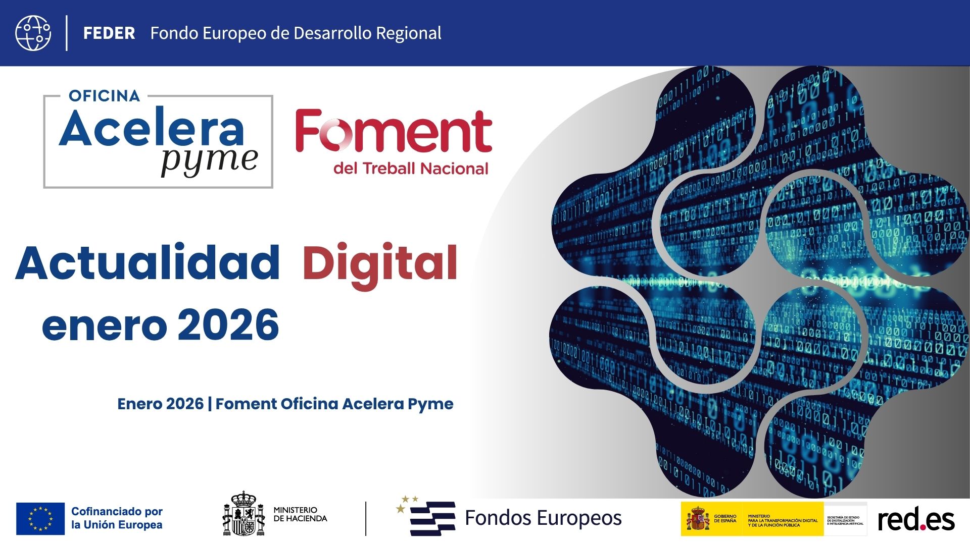 Ya tenéis disponible la Actualidad Digital del mes de enero, elaborada por Foment Oficina Acelera Pyme, que recoge una selección de consultas públicas, convocatorias abiertas y ayudas de interés para pymes, autónomos y startups, con información destacada del ámbito estatal, de Cataluña y de la Unión Europea.