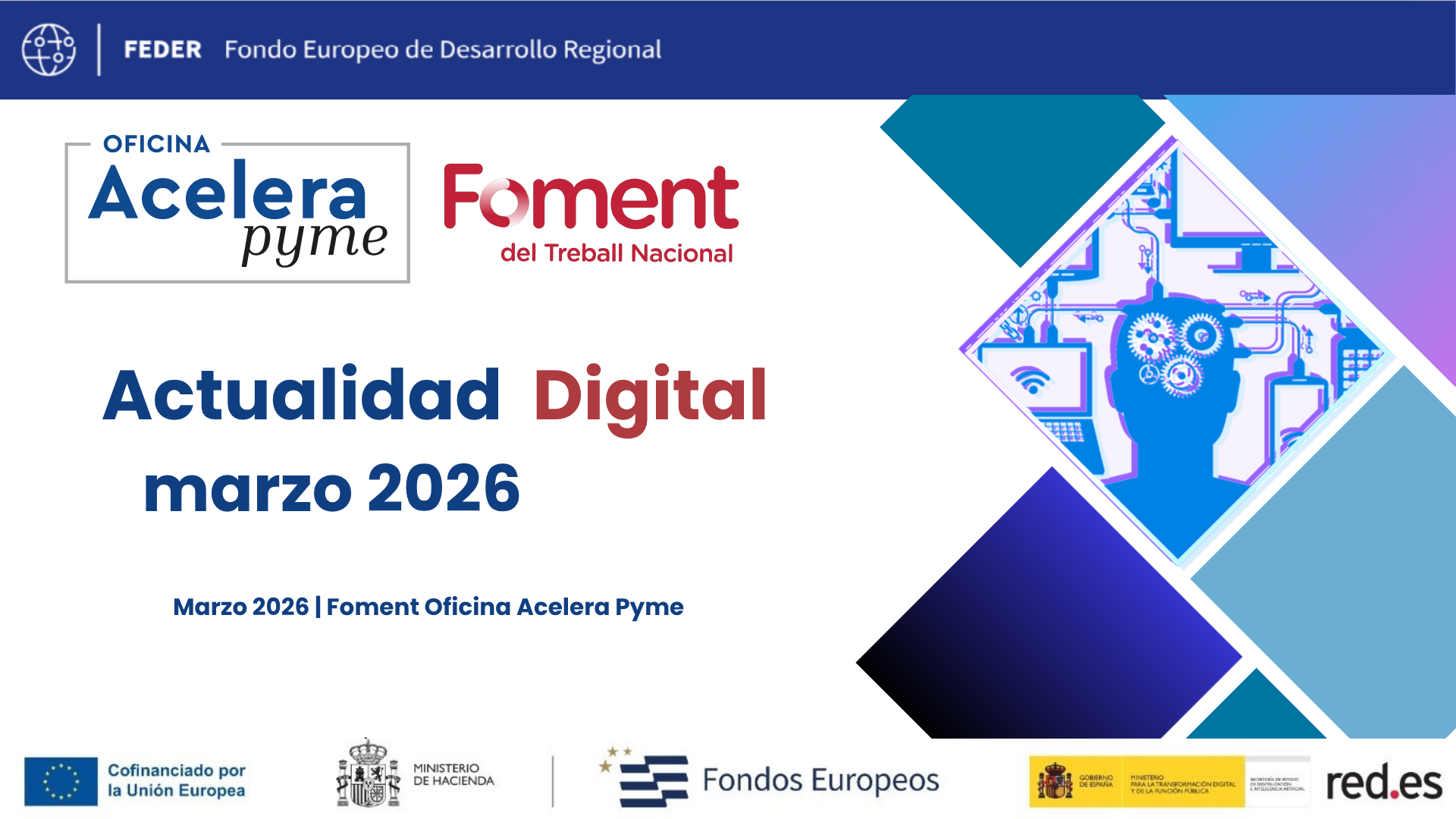 Ya tenéis disponible la Actualidad Digital del mes de marzo, elaborada por Foment Oficina Acelera Pyme, que recoge una selección de consultas públicas, convocatorias abiertas y ayudas de interés para pymes, autónomos y startups, con información destacada del ámbito estatal, de Cataluña y de la Unión Europea.