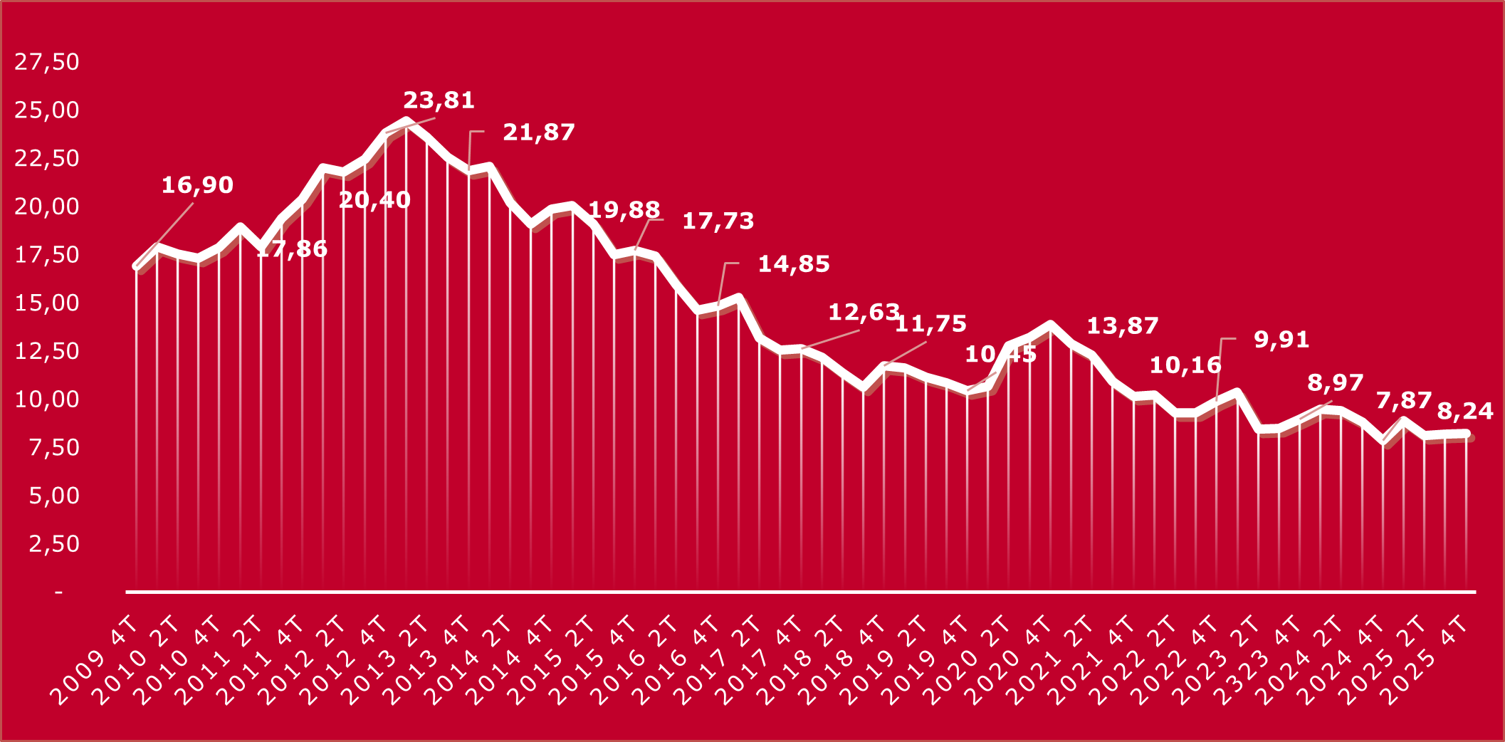 | 2016 4T | 18,63 | 14.85 | 2025 4T | 9,93 | 8,24 |