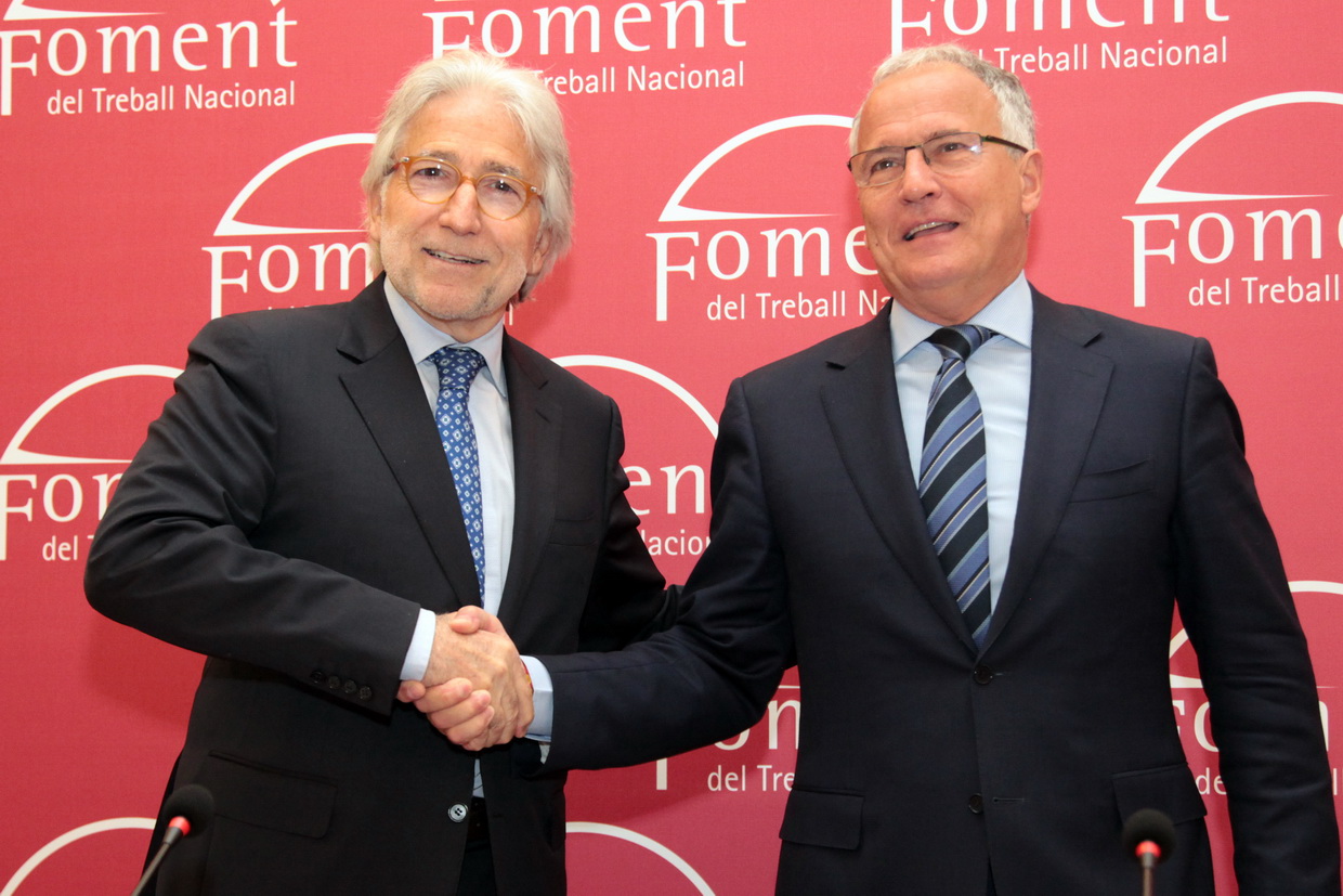 El presidente de Foment del Treball, Josep Sánchez Llibre, ha presentado el desayuno coloquio con la cabeza de lista del Partido Popular de Cataluña (PPC) para las elecciones municipales de Barcelona, Josep Bou , en la sede de la patronal. El candidato ha compartido con los empresarios las propuestas de gobierno de su partido, y durante la ronda de preguntas, moderada por la redactora de Cronica Global, Cristina Farrés, los empresarios han trasladado algunas de sus principales inquietudes y solicitudes para la nueva etapa de mandato.