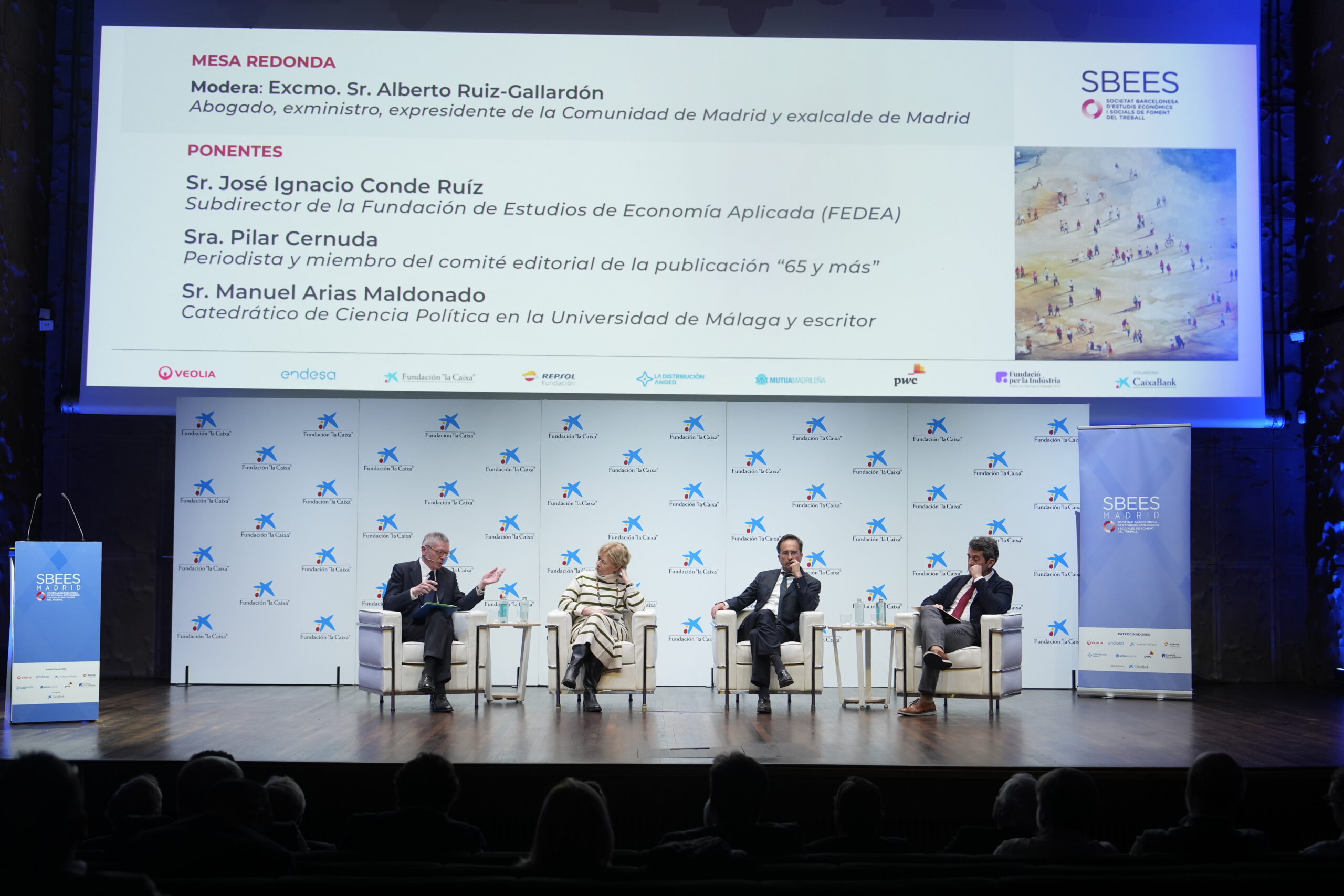 A continuación, ha tenido lugar una mesa redonda bajo el título “Demografía y Empresa”, en la que han participado José Ignacio Conde Ruíz, subdirector de la Fundación de Estudios de Economía Aplicada (FEDEA), Pilar Cernuda, periodista y miembro del comité editorial de la publicación “65 y más”, y Manuel Arias Maldonado, Catedrático de Ciencia Política en la Universidad de Málaga y escritor. La mesa ha sido moderada por Alberto Ruiz-Gallardón, abogado, exministro, expresidente de la Comunidad de Madrid y exalcalde de Madrid.