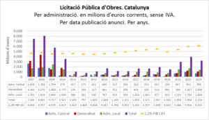 - La licitació anual d’obres públiques cau un 19% respecte a l’any anterior i se situa en els 3.213,8 milions d’euros.