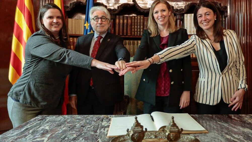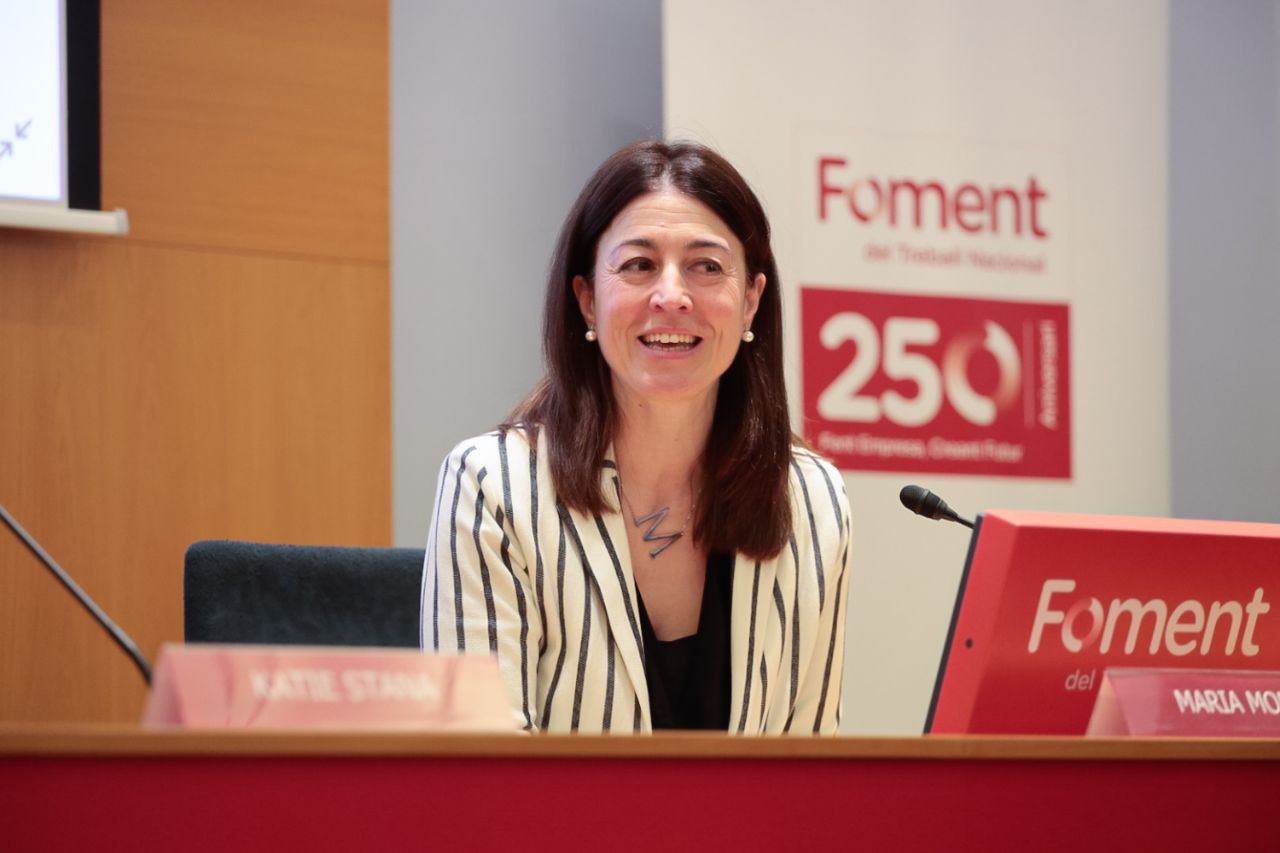 Abans de la presentació, Stana s’ha reunit amb el president de Foment per signar el Llibre d’Honor de la institució. També han estat presents la directora d’Innovació juntament amb la cònsol de Diplomàcia Pública, Emma Marwood, i el director d’Internacional de la patronal, Kilian Garcia.