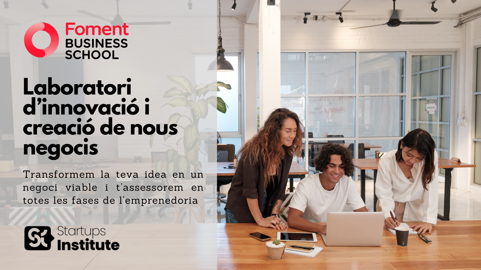 Foment del Treball, juntament amb Startups Institute i a través de Foment Business School, et presenta el Laboratori d’Innovació i Creació de Nous Negocis, un programa intensiu i 100% telepresencial dissenyat per ajudar emprenedors, professionals i innovadors corporatius a crear, validar i fer créixer nous projectes empresarials amb metodologia pròpia i acompanyament expert.